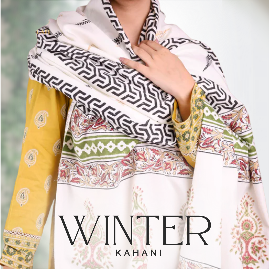 Embroidered Winter Suit with Chiffon Dupatta U - 2020 KL - BLK