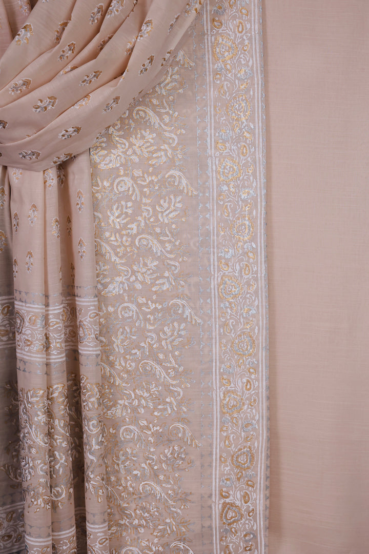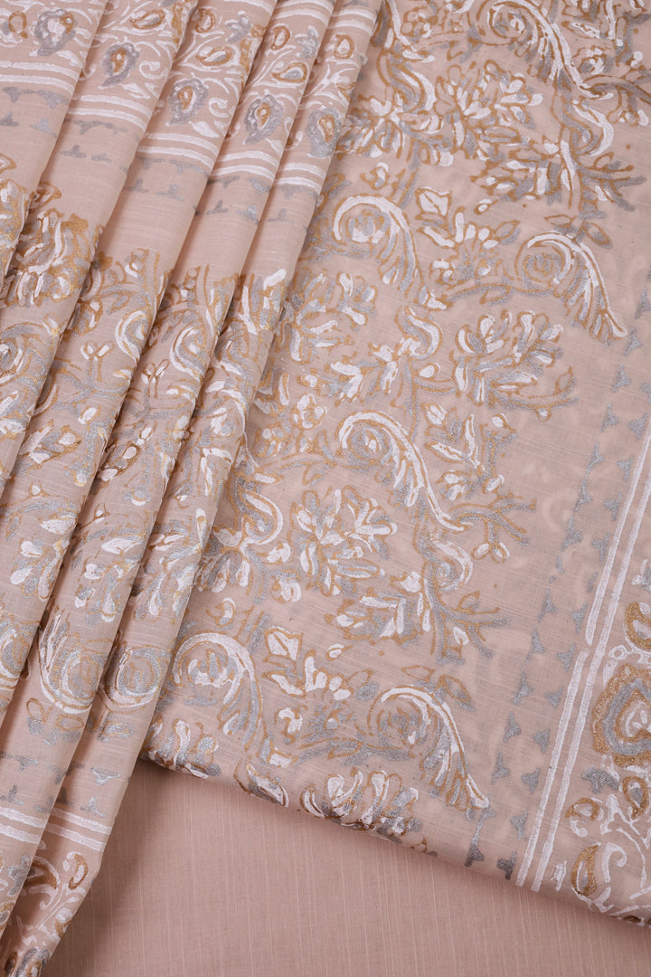 Un-stitched 3pc Authentic Block Printed Suit with Gold.