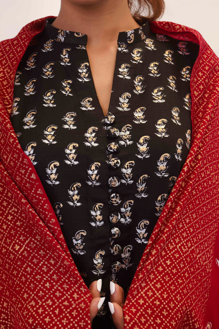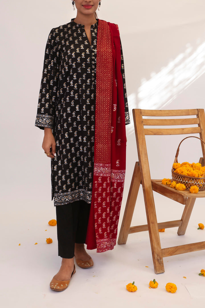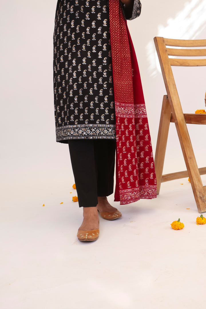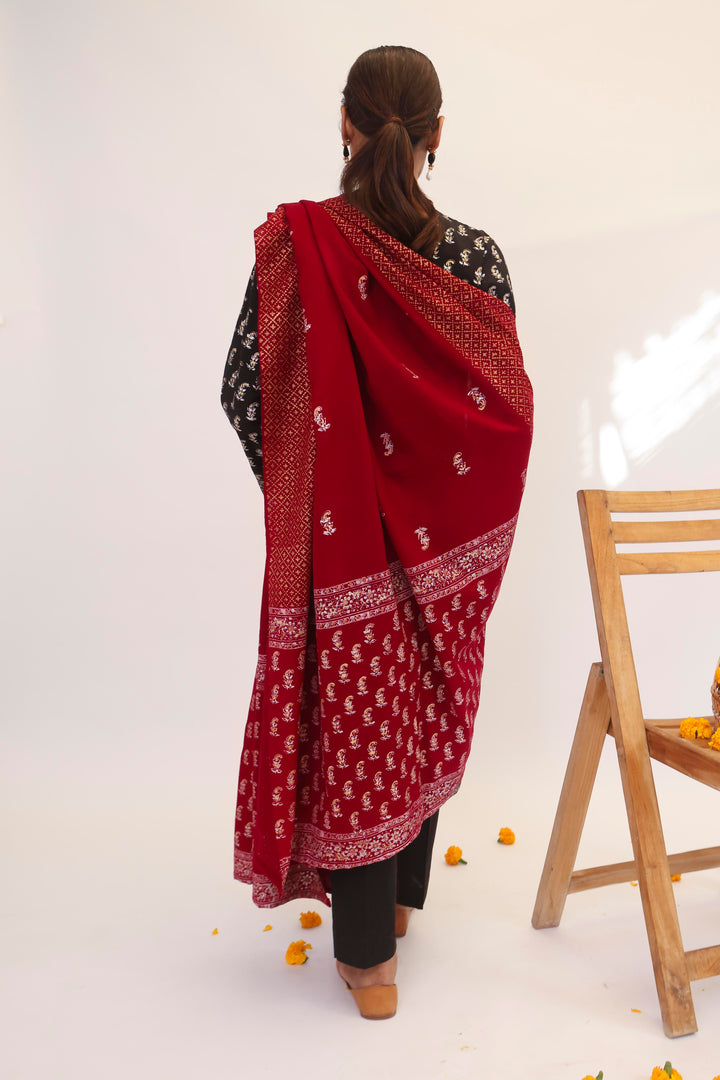 Winter Block Print Suit with Shawl - BP-238 BKM