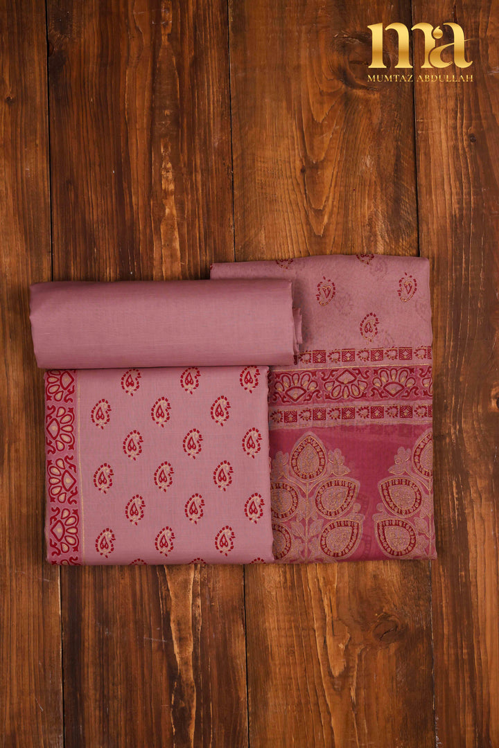 Un-stitched 3 pc Gold Block Printed Suit.