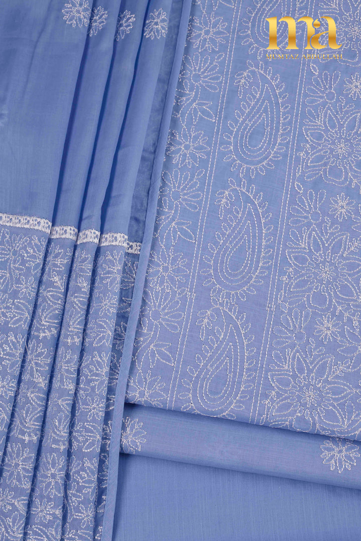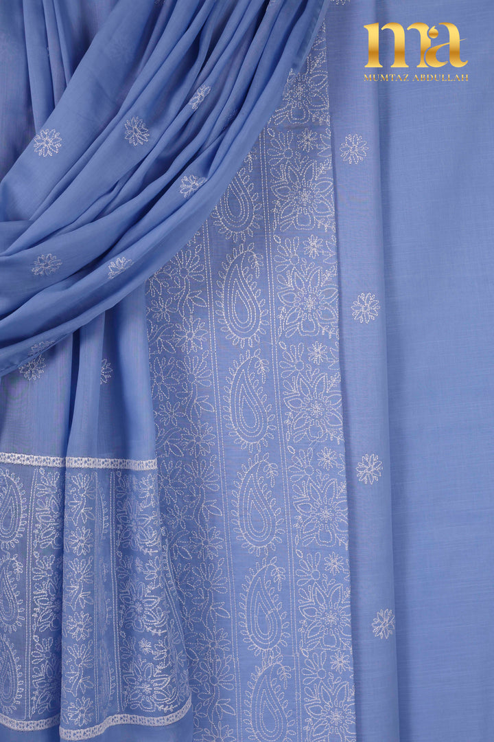 Classic MA Embroidered suit on Cotton Lawn fabric with pure lawn Embroidered dupatta. Shadow work embroidery jaal all over shirt front, light embroidered motifs on back & sleeves. Unique pallu style dupatta finished with pipin.