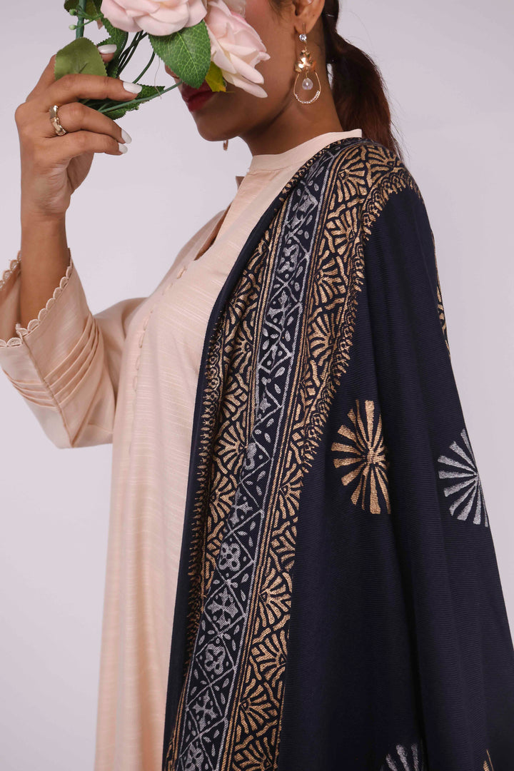 Classic MA authentic hand block printed shawl. Exquisite colour combinations and elegant design. Pair with any light or dark western or eastern outfit.