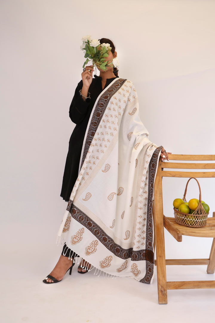 Classic MA authentic hand block printed shawl. Exquisite colour combinations and elegant design. Pair with any light or dark western or eastern outfit.