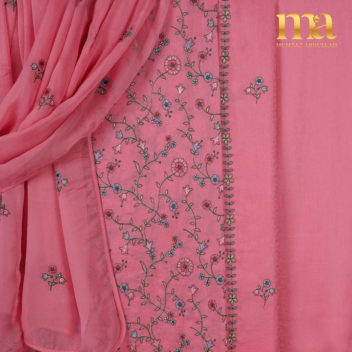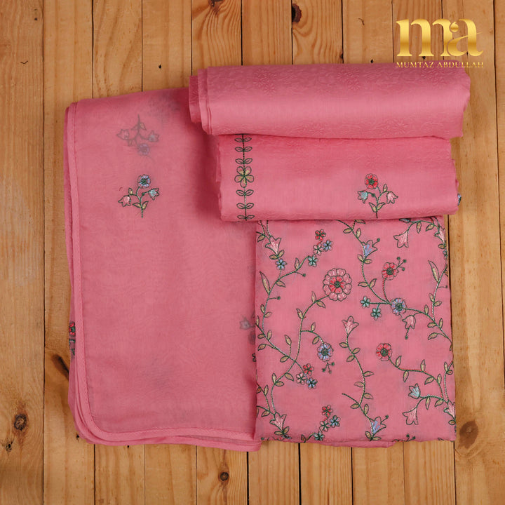 Classic MA 3pc Unstitched embroidered suit on Jacquard Lawn fabric with Chiffon dupatta. Shirt Front full Embroidery, light motifs on back and sleeves. Chiffon dupatta with motifs finished with pipin. Extra border given for designing.